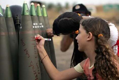 Israeli children writing messages on bombs to be droped on Lebanese civilians
